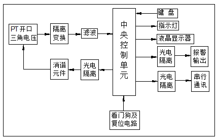 該裝置實時顯示系統(tǒng)時鐘及母線PT開口三角電壓17Hz、25Hz、50Hz、150Hz四種頻率的電壓分量,可以區(qū)分過電壓、鐵磁諧振以及單相接地,可配置RS485通信接口,適用于無人值守變電站。